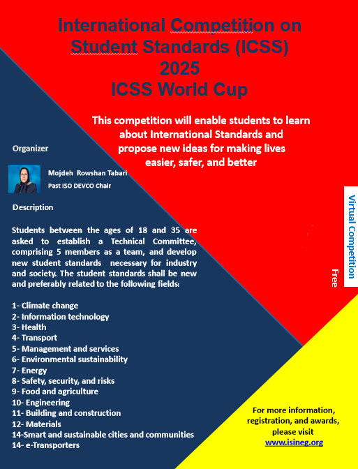 ترویج و آشناسازی نسل جوان و دانشجویان دانشگاه های کشور با مقوله استاندارد و اهمیت استانداردسازی در دستور کار سازمان ملی استاندارد قرار دارد. لذا به منظور منسجم نمودن اقدامات مرتبط در حوزه جوانان، برگزاری دومین دوره رقابت بین المللی استانداردهای دانشجویی با عنوان - Standards Student on Competition International 2025 Cup World توسط بخش خصوصی برنامه ریزی و آغاز شده است. هدف از این رقابت ها آشنا نمودن دانشجویان با استانداردهای ملی و بین المللی از طریق جلب مستقیم مشارکت آنان در فعالیت های استانداردسازی می باشد.